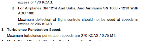 Well let me be gentle about this: 206 knots is a lie. How is it that you can have full control deflection and not stall or overstress a GIII and a G650 at the exact same speed? And you can do this at any weight or altitude? Yes, the published numbers are identical. And no, 206 knots almost never works for maneuvering.
